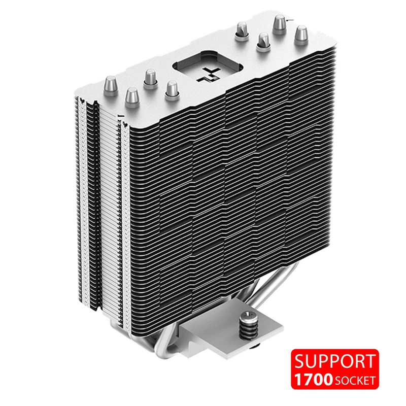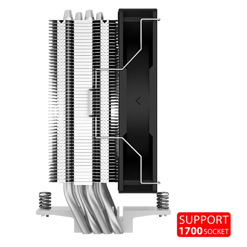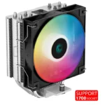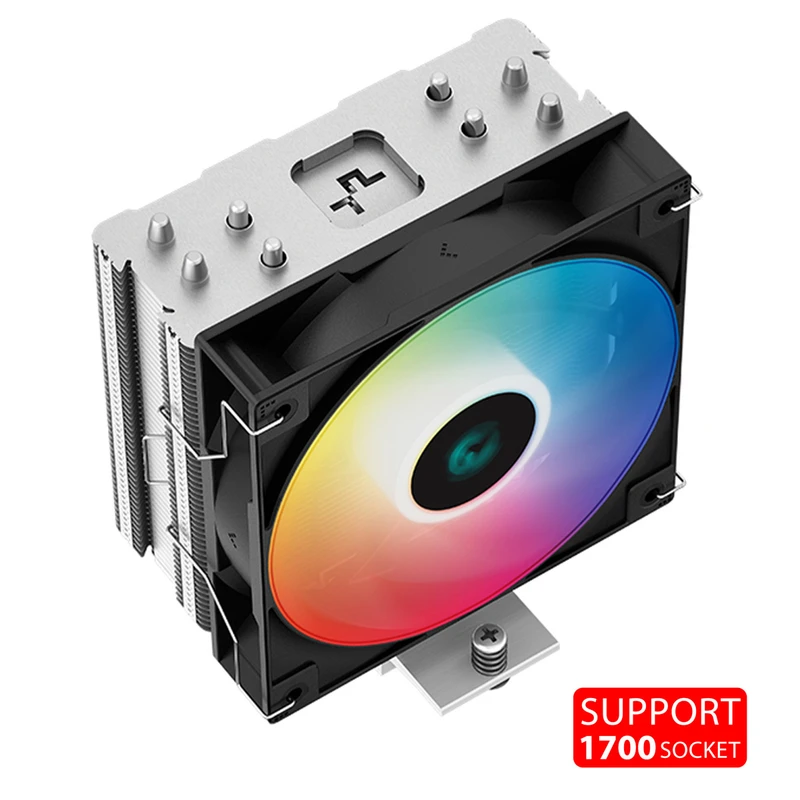 این مدل از سری پردازنده های نسل 12 اینتل (سوکت 1700) پشتیبانی میکند. فن خنک کننده پردازنده دیپ کول مدل AG400 LED LGA1700 یک خنککننده پردازنده 120 میلیمتری دارای یک برج است که دارای عملکرد توان خنککننده 220 واتی بوده و برای عملکرد بهتر و مصرف کمتر بهینهسازی شده است. با حداکثر 220 وات قدرت دفع حرارت و چهار لوله حرارتی با لمس مستقیم، این خنک کننده به سرعت حرارت را از پردازنده شما دفع میکند. نورپردازی LED شش رنگ این هدفون به سیستم شما جلوه زیبایی میبخشد.فن خنک کننده پردازنده دیپ کول مدل AG400 LED توانایی زیادی برای سازگاری با انواع سختافزارها دارد. همچنین با توجه به اینکه در اکثر مادربوردها، اسلاتهای رم در نزدیکی پردازنده قرار دارند، این فن به نحوی طراحی شده که هیچ مزاحمی برای رم سیستم شما ایجاد نکند. همچنین طراحی این فن به شکلی است که به راحتی میتوان آن را در آورده و یا دوباره بر روی پردازنده جای داد.تیغههای آلومینیومی قرار گرفته روی هیت سینک تراکم زیادی داشته و دفع حرارت را به بهترین نحو ممکن انجام میدهند. همچنین طراحی آنها به زیباتر شدن کیس شما کمک میکند. لوازم نصب قرار گرفته روی این فن نیز از انواع پردازندههای اینتل و AMD پشتیبانی میکنند که فهرست آنها در ادامه میآید:اینتل:LGA1700/1200/1151/1150/1155 AMD:AM5/AM4