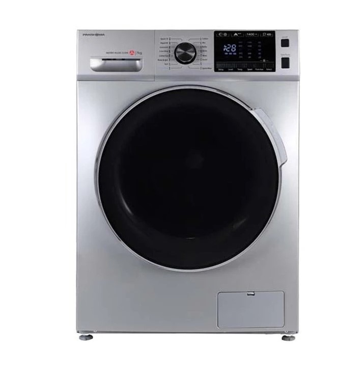 طراحی شیک و مدرن: درب کروم و رنگ سيلور باعث میشود این ماشین لباسشویی بهطور خاص در آشپزخانه شما بدرخشد.